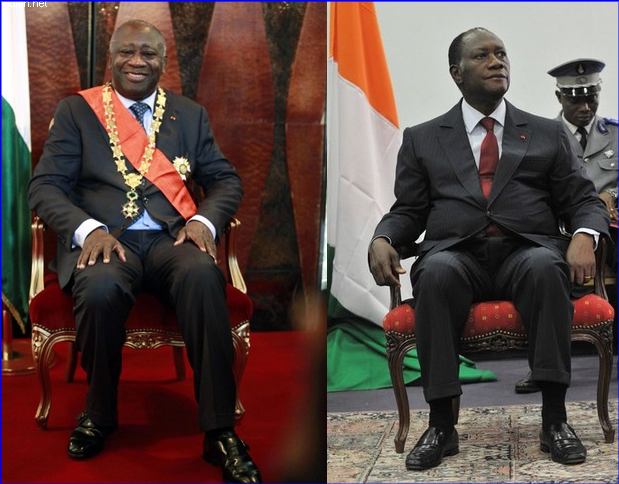 Le Président Alassane Ouattara et son prédécesseur Laurent Gbagbo.