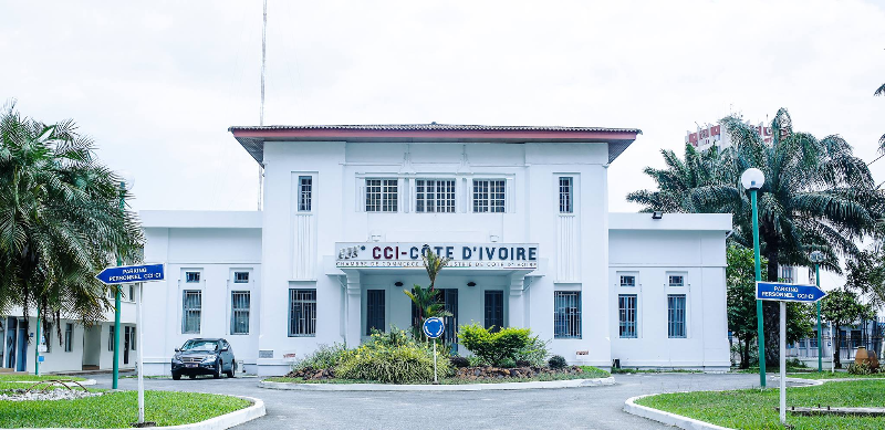 La Chambre de Commerce et d'Industrie (CCI) de Côte d'Ivoire à Abidjan.
